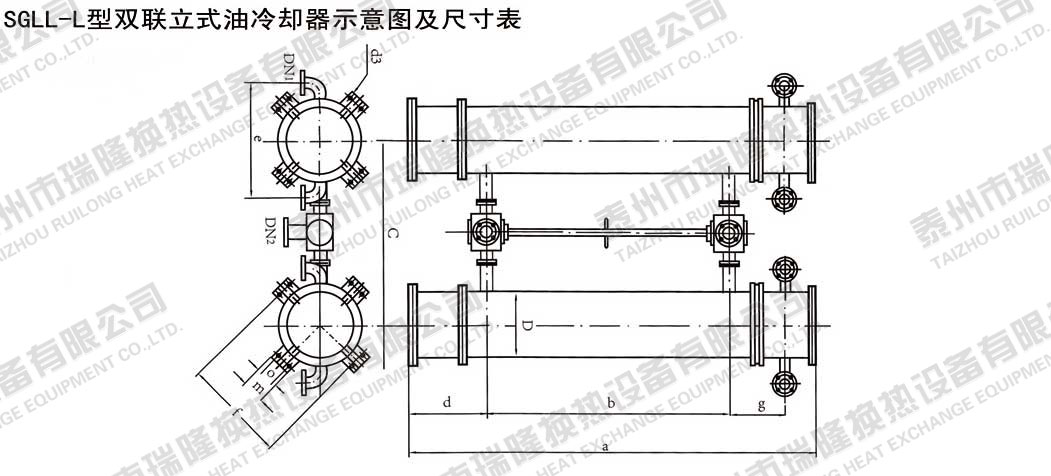 该冷却器采用双联结构,由两只相同面积的冷油器和三通阀装置构成,一只工作,一只备用,每个冷却器能承担整个系统的冷却负荷,管板一头固定,一头浮动、可拆卸的管束和水室箱盖,便于运行过程中清洗、检查和维修。冷却器的材质,根据使用场所、水系统条件可有多种选择。